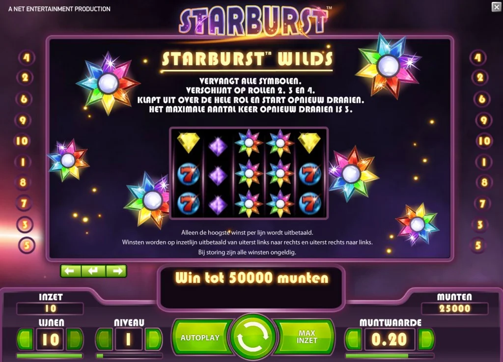Starburst™ mixt stralende kleuren met een casino ambiance. Voor spelers die houden van snelle spelautomaten biedt Starburst™ veel toffe kenmerken die borg staan voor een onvergetelijke spelervaring.