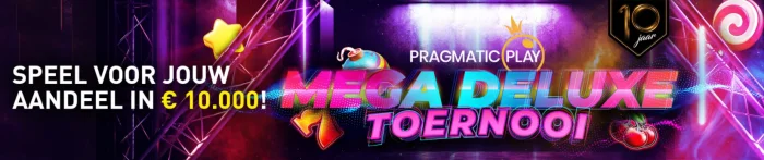 Het laatste lange toernooi ter ere van de 10e verjaardag van Casino 777 is geopend. Speel mee voor een deel van €10.000 aan prijzen. Het Pragmatic Play Mega Deluxe toernooi zit vol spanning en sensatie. Niet minder dan 5 geweldige online slots zijn geselecteerd om jou op je wenken te bedienen.